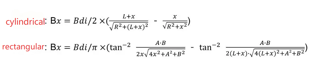 Ultimately, the formulas for calculating the central surface flux density of cylindrical (or near-cylindrical) magnets and rectangular (or near-rectangular) magnets are as follows: