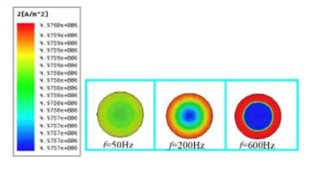 When an alternating current flows through a conductor, the distribution of current density across the conductor's cross-section is non-uniform. As the frequency of the current increases, the current becomes increasingly concentrated near the conductive surface, while the current flowing through the interior of the conductor diminishes; this phenomenon is known as the skin effect. The higher the frequency, the more pronounced the skin effect becomes.