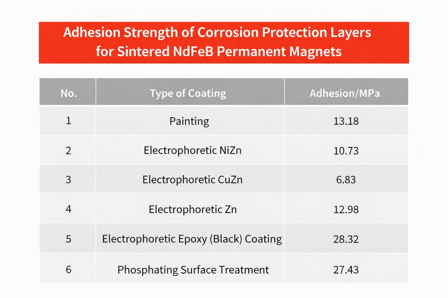 Comparison of Adhesion between Different Coatings and the Magne