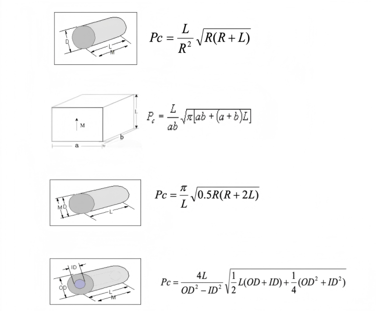 The figure below presents the estimated formulas for calculating the Pc values of various shapes of NdFeB permanent magnets, provided here for your reference. (Note: The calculation methods for Pc vary depending on the type of magnet; the formulas below are applicable only to sintered NdFeB magnets.)