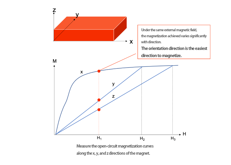 Anisotropic magnets exhibit different magnetic properties depending on the direction. The direction in which optimal magnetic performance is achieved is called the orientation direction.