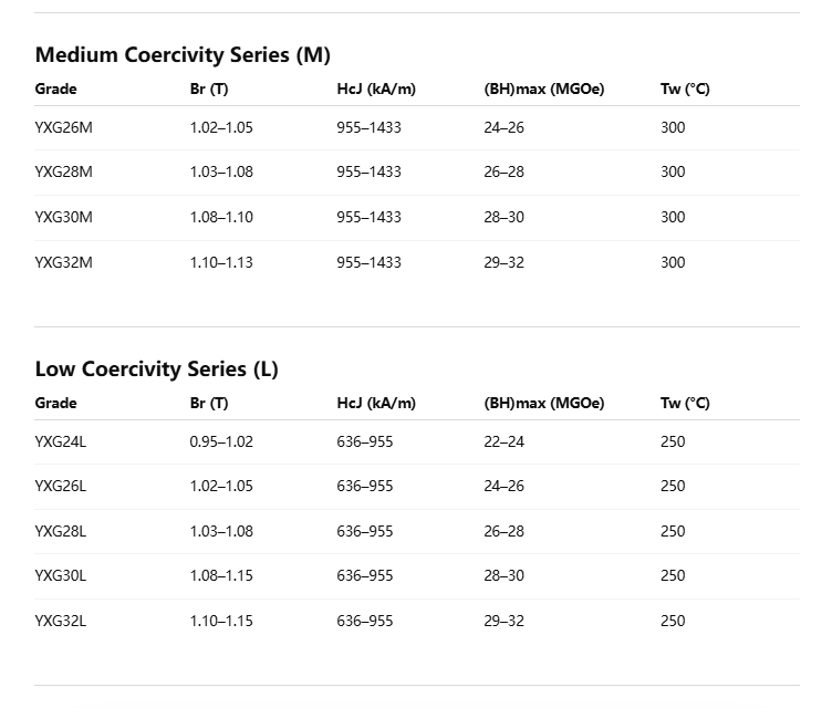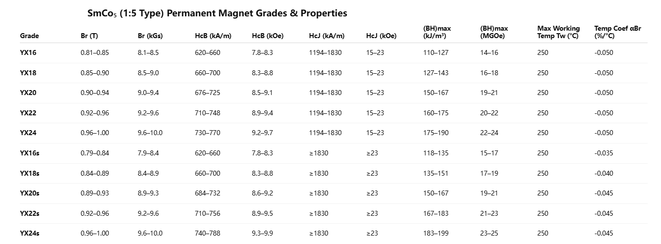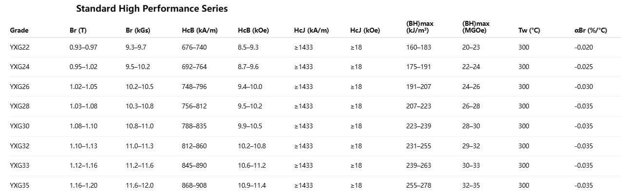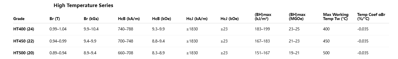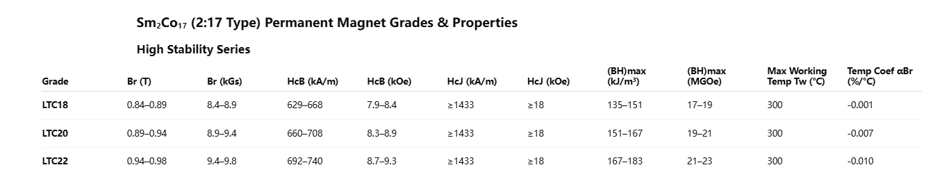 In terms of performance characteristics, samarium-cobalt permanent magnets can be broadly categorized into three series: the High-Performance Series, the High-Stability Series (featuring a low temperature coefficient), and the High-Temperature Resistance Series.