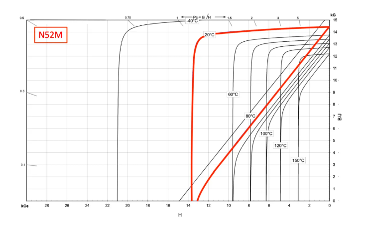 The demagnetization curve provides a comprehensive representation of a magnet’s magnetic properties, as well as how these properties vary under different temperature conditions.